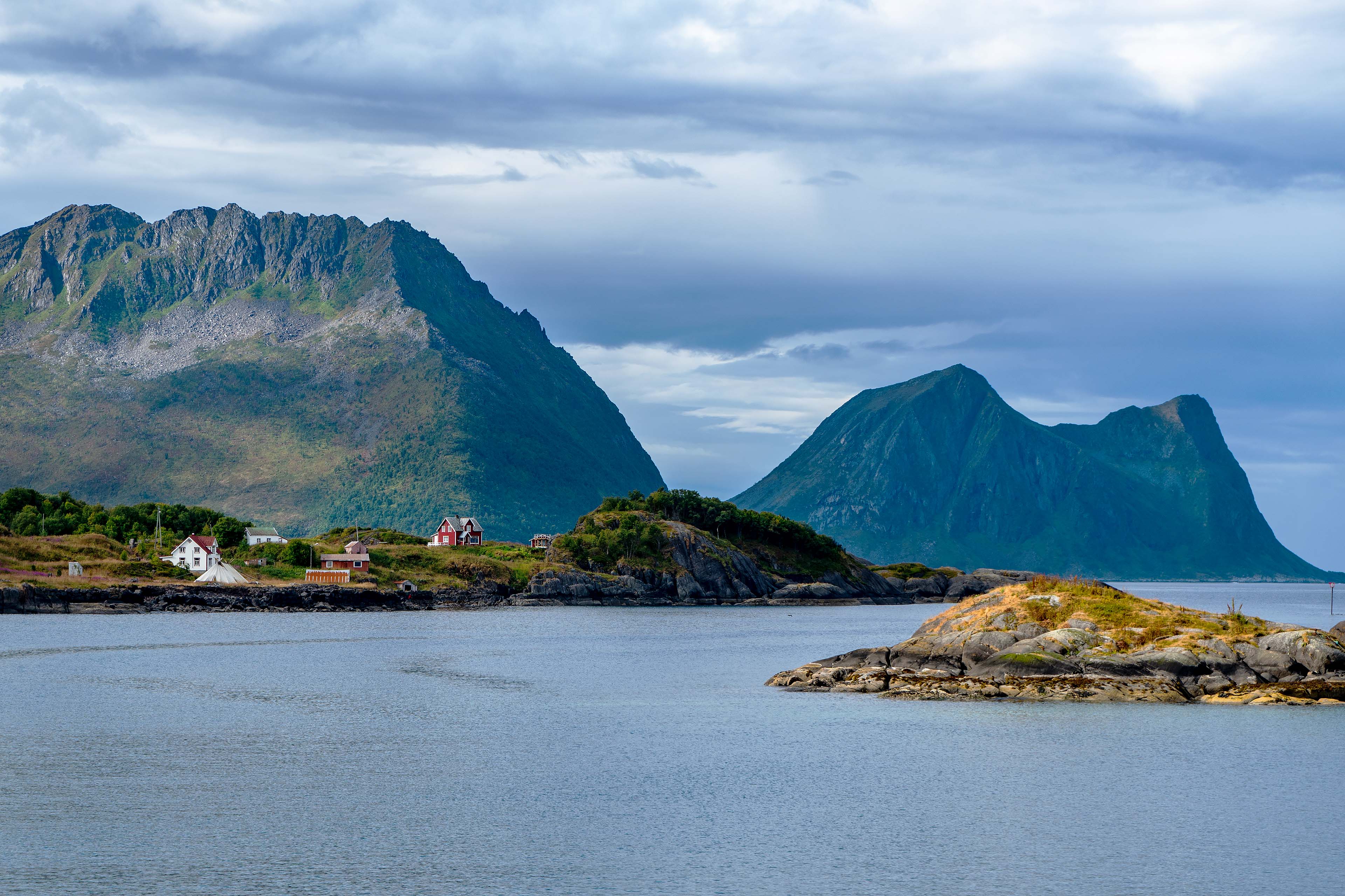Wir verlassen Andenes und die Vesterålen mit der Sommerfähre nach Gryllefjord auf Senja. Die Überfahrt dauert etwa 1,5 Stunden und ist heute etwas unruhig, obwohl kein größerer Wellengang sichtbar ist. Das Wetter bessert sich auf Senja kurzfristig und wir fahren ein wenig im Westen der Insel umher und machen ein paar Fotos. So richtig Stimmung will dabei nicht aufkommen, dafür ist das Wetter zu wankelmütig. Immer wieder zieht der Himmel zu und es gibt kräftige Schauer. Am Nachmittag fahren wir in unsere wunderbar gelegene Unterkunft in Hamn.