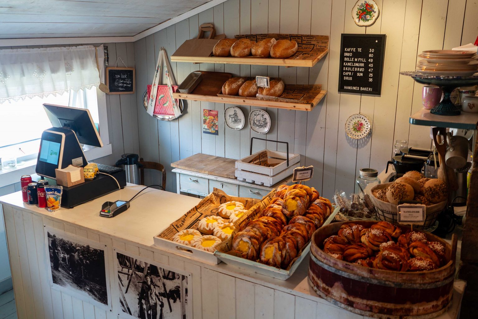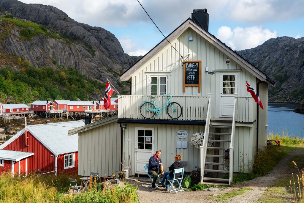Die E10 nach Reine ist heute wieder frei. Wir beschließen eine kleine Einkaufstour zu machen. Erstes Ziel ist die wohl beste und urigste Bäckerei der Lofoten in Nusfjord. Die Bäckerei von 1877, die einst Brotlieferant für die Rorbu-Fischer war, ist heute wieder in Betrieb. Das Brot, norwegische Skoleboller oder Zimtschnecken einfach ein Gedicht, haben aber auch ihren Preis. Fisch kaufen wir in Sakrisoy und nebenbei machen wir auch noch ein paar Fotos, und so vergeht der Tag wie im Flug.
