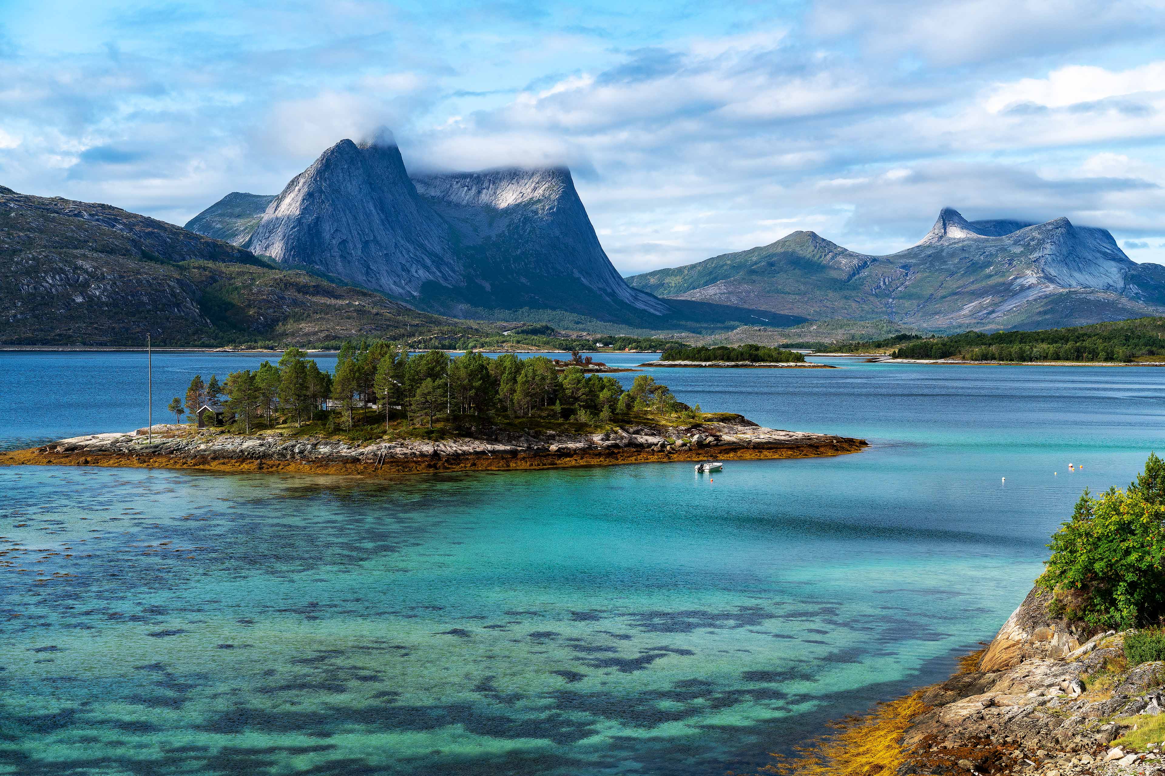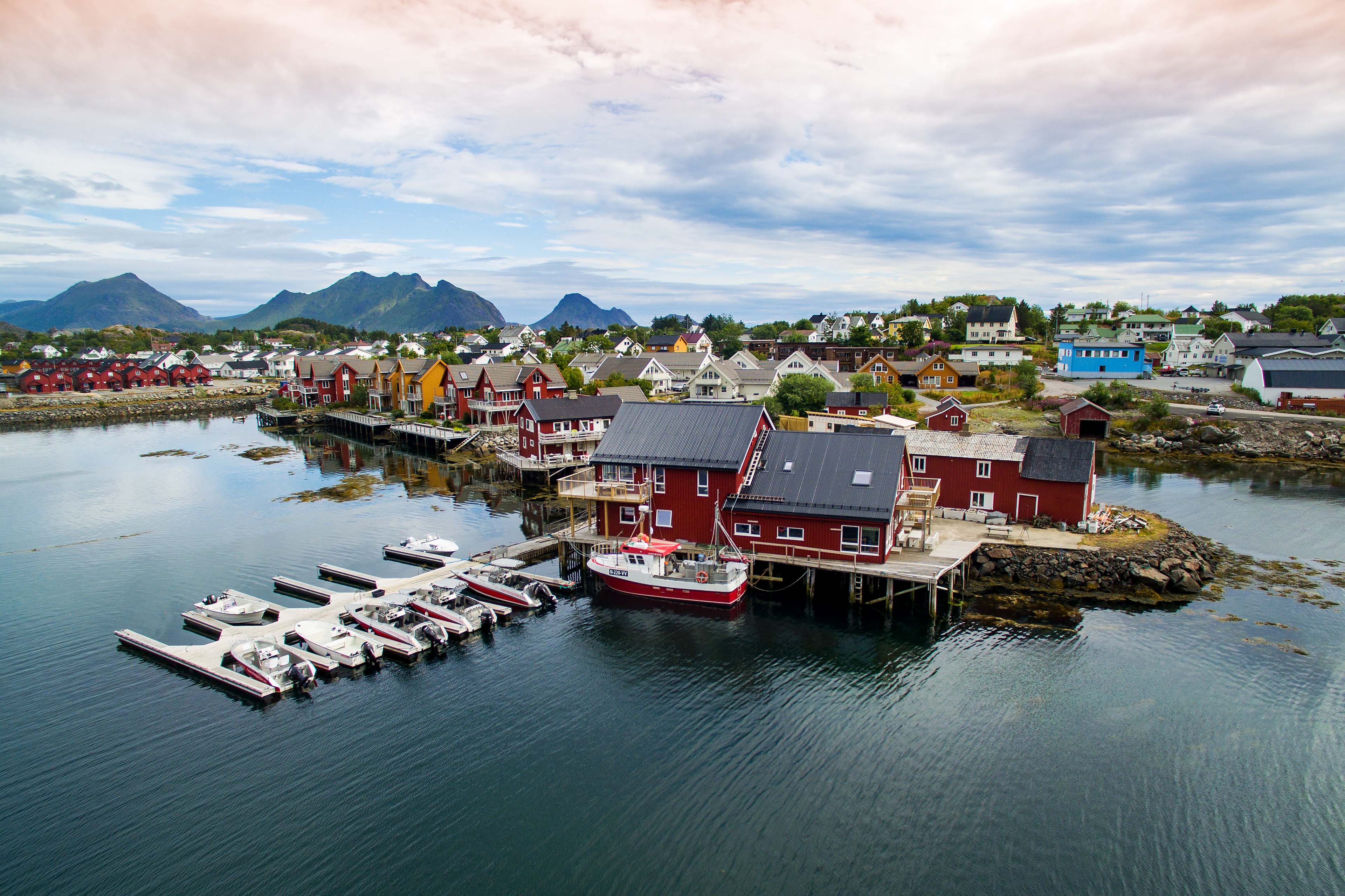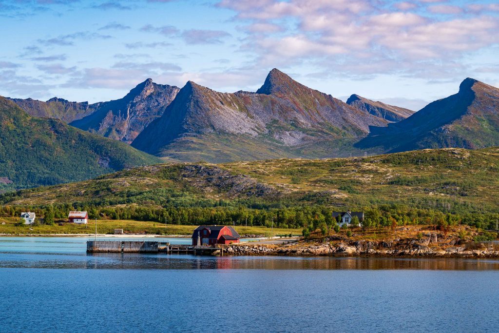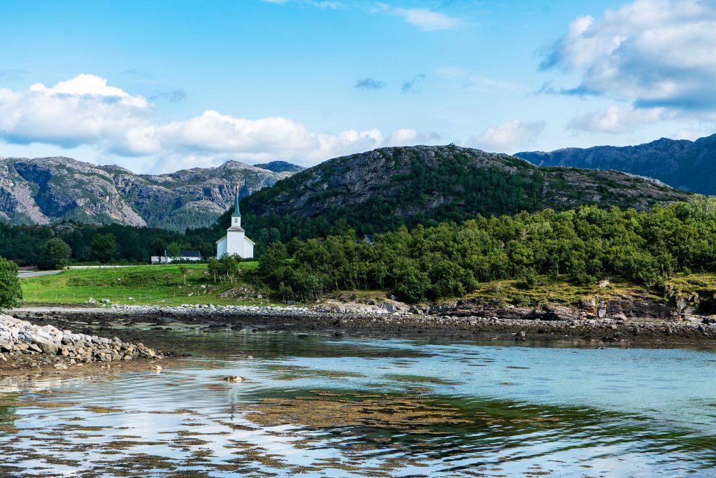 Nach dem wunderbaren Tag in Trondheim fahren wir heute zur Helgelandküste nach Brønnøysund. Auf der E6 kommen wir schnell voran und über die Staatsstraße 17 gelangen wir zur Fähre kurz vor Brønnøysund. Nach einer kurzen Fährfahrt gelangen wir zu unserer, in ruhiger Landschaft gelegenen, typisch norwegischen Hütte in Velfjord, von wo aus wir morgen die Stadt und das Umland erkunden wollen.