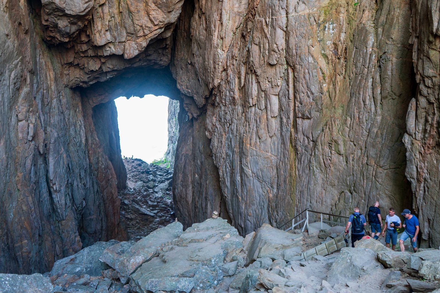 Heute wollen wir die Gegend um Brønnøysund erkunden. Das wichtigste Ziel ist hier der Torghatten, ein Berg mit einem großen Loch in der Mitte. Von der Ferne sieht es eher klein aus, aber durch den Fels zieht sich eine 160 Meter lange und bis zu 35 Meter hohe und 20 Meter breite Öffnung. Vom Parkplatz muss man etwa eine halbe Stunde aufsteigen. Durch die Öffnung kann man nicht nur hindurch schauen, sondern auch hindurch steigen. Eine lange Holztreppe führt erst hinab und zum Ende der Röhre muss man leicht über Felsen wieder aufsteigen. Von hier hat man einen wunderbaren Blick über die Schärenlandschaft auf das offene Meer. Nach dem Abstieg fahren wir in den nahe gelegenen Ort Toft, wo sich das norwegische Aquakulturzentrum, eine Besuchs- und Forschungsanlage für moderne Aquakultur befindet. Nach der Besichtigung fahren wir über die große Brücke zurück nach Brønnøysund und lassen den Tag ausklingen.