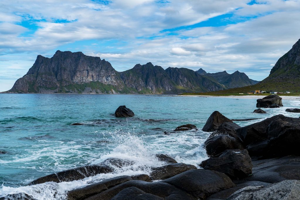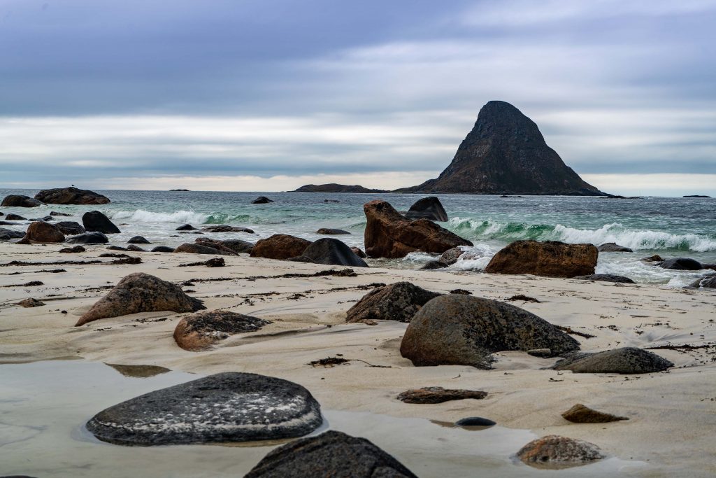 Der Morgen beginnt bewölkt, aber im Tagesverlauf wird es immer sonniger und wir erreichen 20 Grad. Heute will ich meine Drohne fliegen lassen. Dazu entschließen wir uns zu den Stränden Haukland und Utakleiv zu fahren, die nur durch einen kleineren Berg getrennt sind. Beides sind tolle Strände in grandioser Landschaft, die unterschiedlicher nicht sein könnten. Unzählige Felsen in unterschiedlicher Form und Größe reihen sich entlang des Strandes von Utakleiv, während Haukland ein traumhafter Sandstrand ist. Uns gelingen schöne Fotos und wir genießen den Tag.