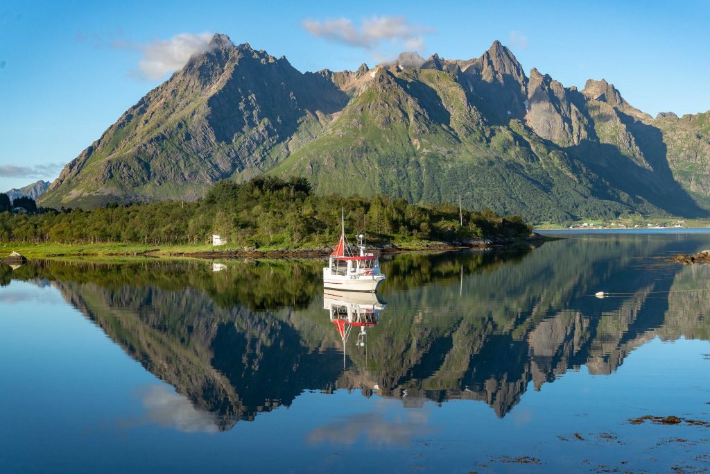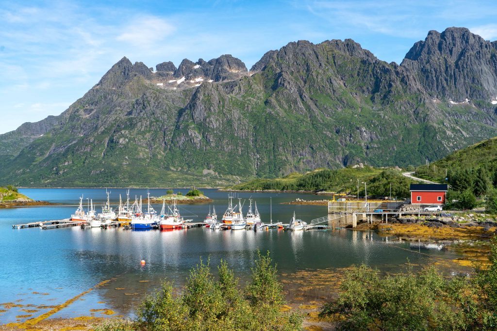 Auf unserer Fahrt Richtung Lofoten entschließen wir uns einen Umweg über die zauberhafte Insel Senja zu nehmen. Von Tromsø kommend nehmen wir die Fähre von Brensholmen nach Botnhamn. Unser erstes Ziel ist das Fischerdorf Husøy, das mit einer exponierten Insellage aufwarten kann. Weiter führt die Strecke an ins Meer hinabstürzenden, steilen Bergen vorbei. Ein oft überwältigender Anblick und markantes Wahrzeichen der ganzen Strecke. Immer wieder führen uns Tunnel zu neuen Ausblicken und schönen Stränden mit glasklarem, sauberen, aber kalten Wasser. Die Fischerboote der Ortschaft Senjahopen liegen im Hafen vor einem beeindruckenden Bergpanorama. Die Zeit vergeht wie im Flug und über den Aussichtspunkt bei Bergsbotn biegen wir Richtung Finnsnes ab. Es sind noch vier Stunden Fahrt zu unserer Unterkunft in Vestpollen/Lofoten.