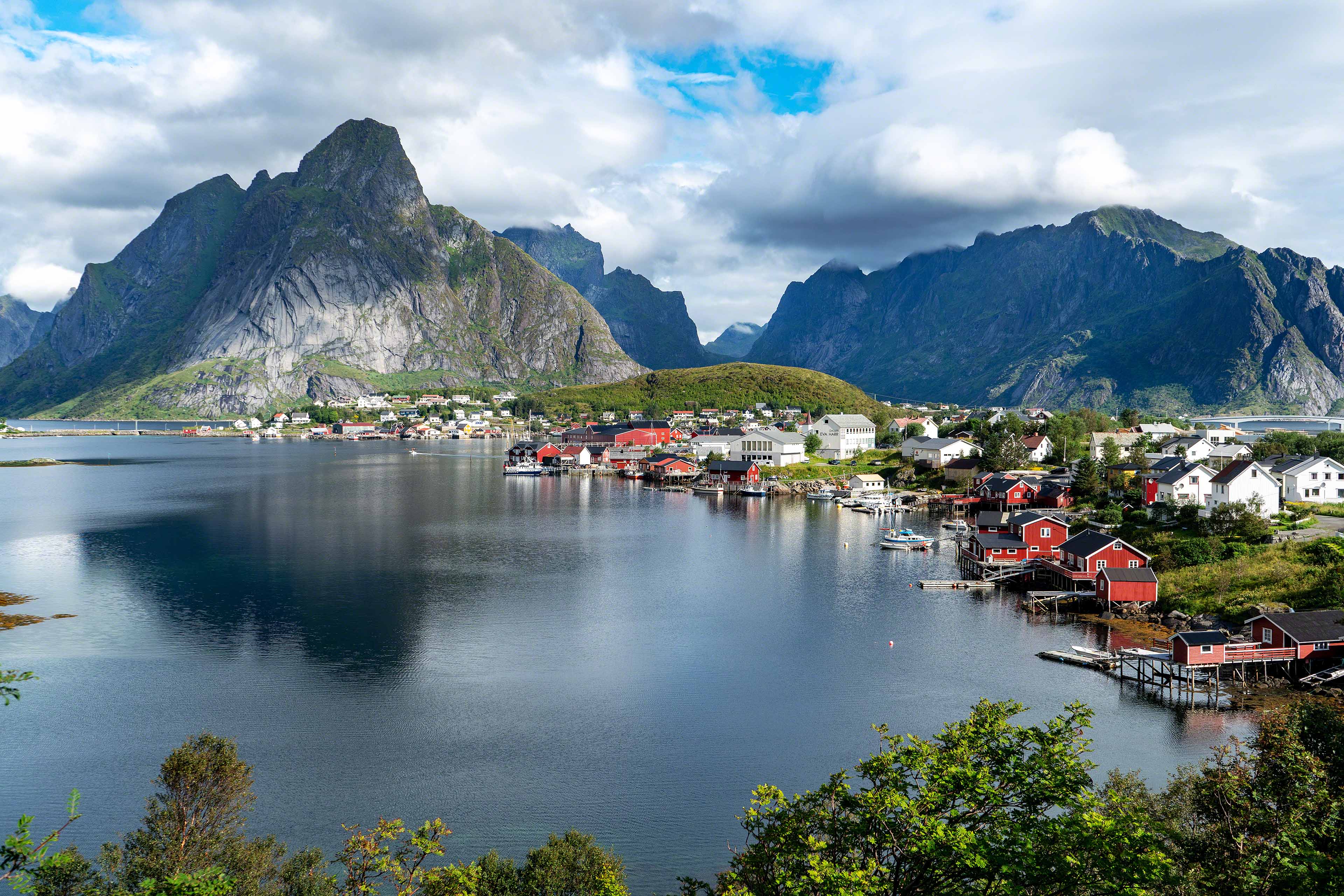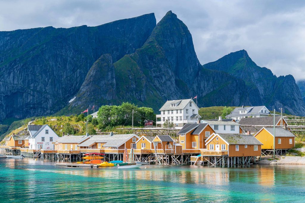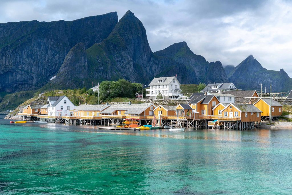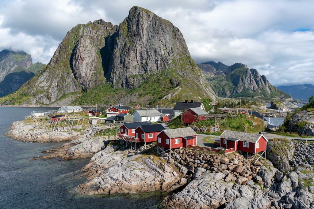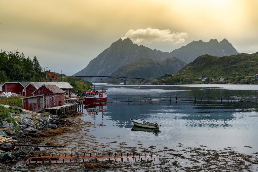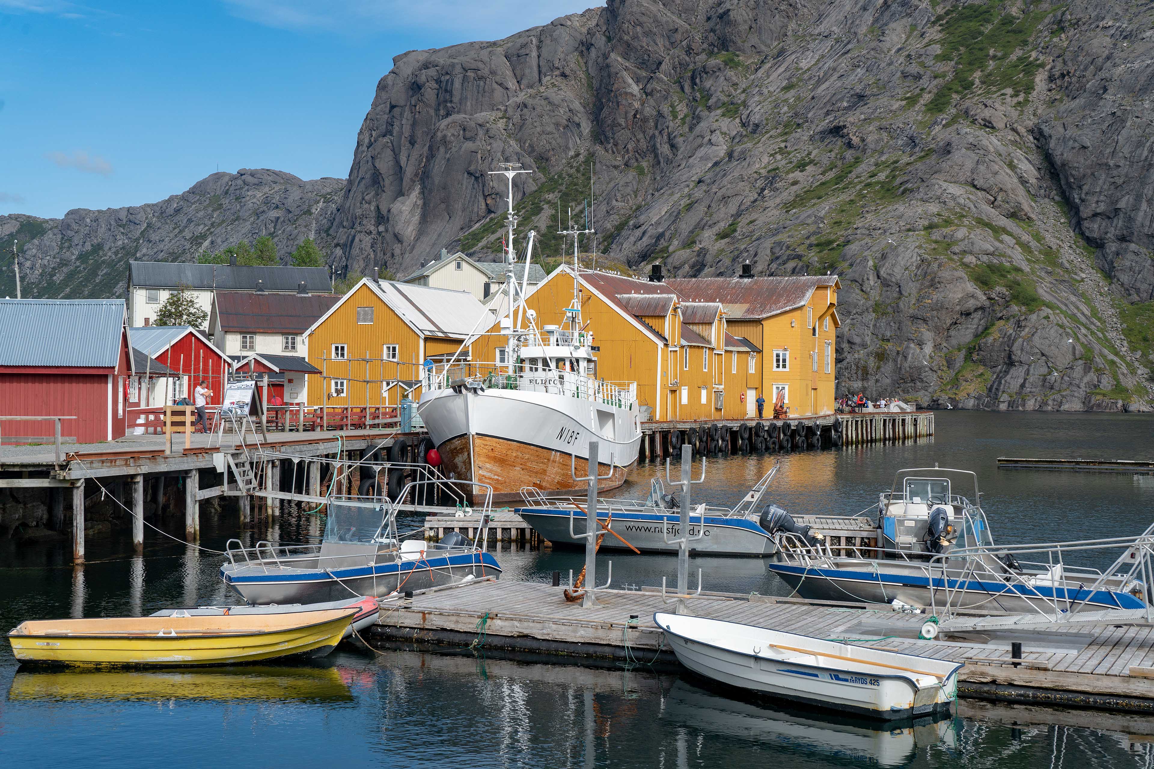 Zu Beginn wie immer der aktuelle Wetterbericht. Am Morgen aufgelockerte Bewölkung, kein Regen und angenehme Temperaturen. Gut gelaunt brechen wir frühzeitig auf, denn laut Vorhersage soll die Sonne nicht lange scheinen. Unser erstes Ziel ist der Strand von Unstad mit seinen großen Felsbrocken. Auf dem Weg dorthin haben wir einen tollen Ausblick auf die Ortschaft Mærvoll. Am sandigen Teilstück des Strandes surft eine Gruppe. Arctic Surfing im Neoprenanzug, wenn es Spaß macht warum nicht. Ein weiterer schöner Strand befindet sich bei Haukland. Es ist Mittag und das Wetter bleibt länger schön als vorhergesagt. So können wir das ehemals bedeutende Fischerdorf Nusfjord bei gutem Licht besichtigen und fotografieren. Das bis 1989 führende Fischerdorf der Lofoten bietet durch seine einzigartige Lage eine Fülle von Motiven. Nach einer ausgiebigen Besichtigung begeben wir uns nach Reine. Dort angekommen beginnt es, zu regnen.