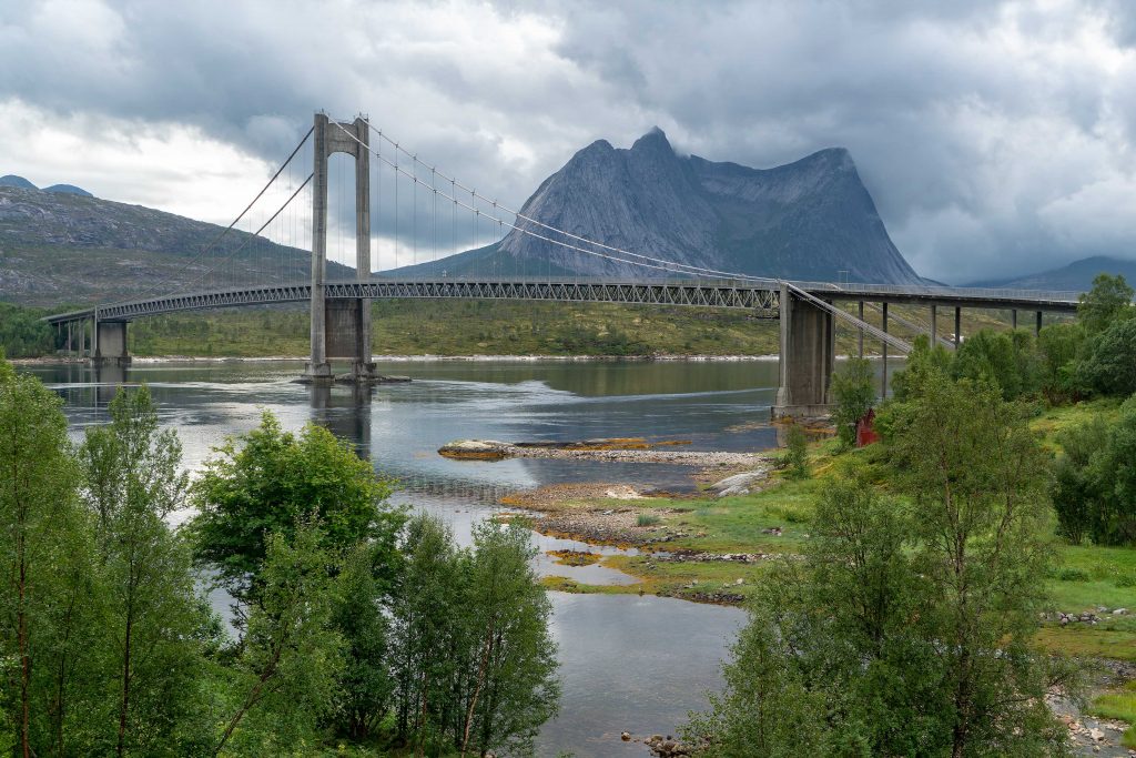 Weiter geht es Richtung Süden über die Küstenstraße 17, die Helgelandskysten. Gleich hinter Bodø zeigt sich am Godøystraumen, einem der vielen Gezeitenströme entlang dieser Landschaftsroute, ein schönes Panorama. Durch schöne Bergwelt, entlang am Wasser gelangen wir zum Rastplatz Ureddplassen. Von hier hat man einen weitläufigen Blick über Fjord und Meer. Ureddplassen ist auch ein Ort der Erinnerung. Hier wurde ein Denkmal für die im Zweiten Weltkrieg umgekommene Besatzung des U-Bootes „Uredd“ errichtet. Weiter geht die Fahrt durch Tunnel an Fjorden entlang, bis wir den Rastplatz Braset erreichen. Von hier hat man einen wunderschönen Blick auf den Engenbreen, einen mächtigen Gletscherarm des Svartisen. Der Engenbreen ist der tiefstgelegene Gletscher Europas, dessen tiefster Punkt sich in nur 100 Meter über dem Meer befindet. Auf dieser Küstenstraße müssen immer wieder Teilstücke per Fähre überbrückt werden. Insgesamt sind es drei Fahrten, bis wir am Abend Sandnessjøen erreichen.