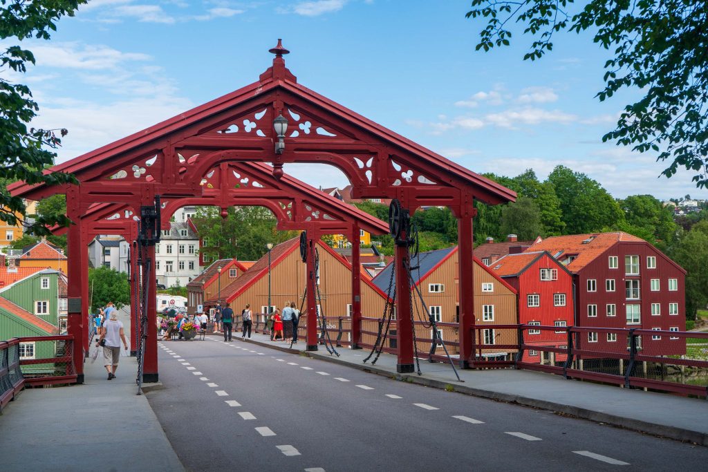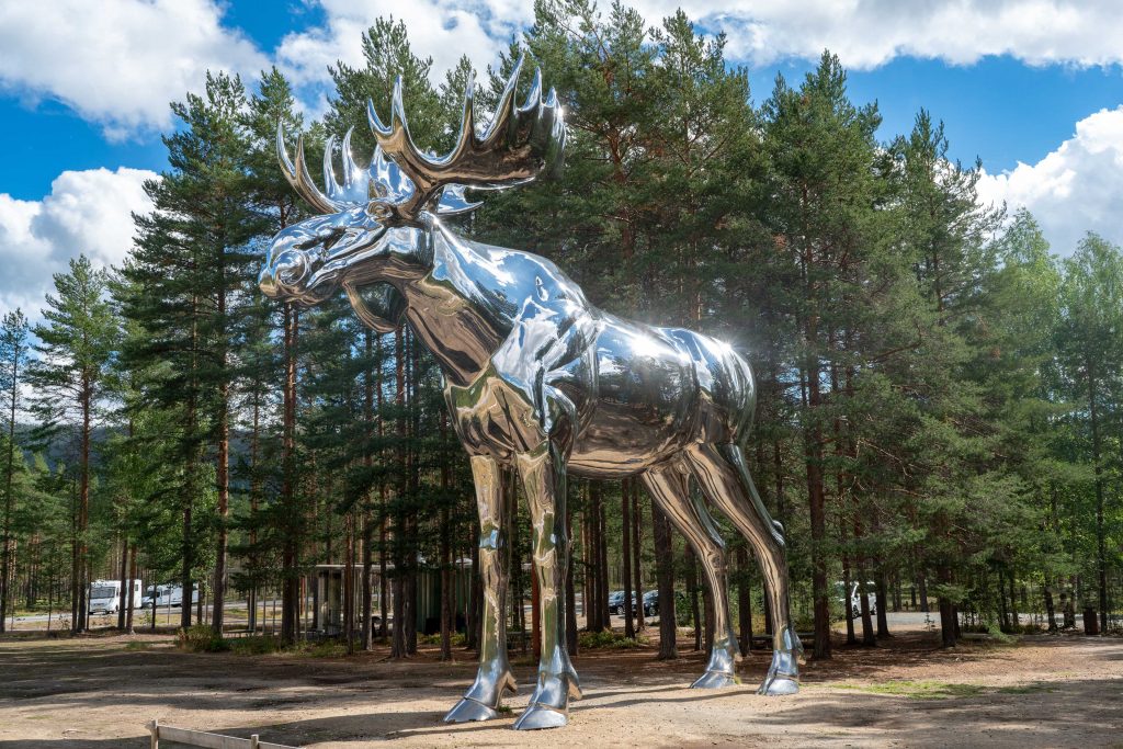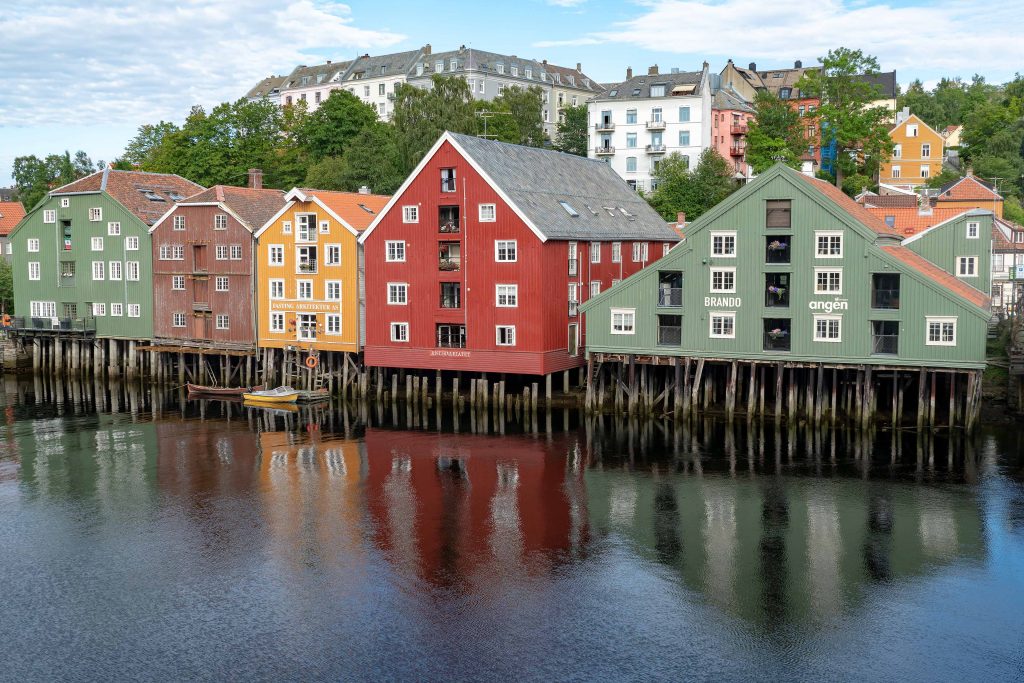 Die heutige Tagesfahrt führt uns von Oslo nach Trondheim. Über die Staatsstraße 3 durch Ostnorwegen gelangen wir nordwärts. Besonders schnell kommen wir nicht voran, denn auf der Landstraße gibt es viele Geschwindigkeitsbegrenzungen und uns kommt es so vor fast ebenso viele fest installierte Radaranlagen. Die Strecke führt an Flüssen vorbei durch bewaldetes Gebiet. Hier müssen Elche leben, hat man doch einen riesigen Elch aus Metall an einem Rastplatz aufgestellt. Nach einer kurzen Fotopause geht es weiter und bei Yset stoßen wir überraschend auf unsere erste Stabkirche. Besonders groß ist sie nicht, aber sie beeindruckt uns dennoch. Bei schönem Wetter erreichen wir Trondheim, eine einladende und gepflegte Stadt. Wir spazieren über die alte Stadtbrücke Gamle Bybro, die uns einen Blick auf das Wahrzeichen Trondheims präsentiert: die farbenfrohen Speicherhäuser am Fluss Nidelva. Ganz in der Nähe ist mit dem Nidorasdom auch ein norwegisches Nationalheiligtum. Wir nehmen uns Zeit und besichtigen den prachtvollen Bau.