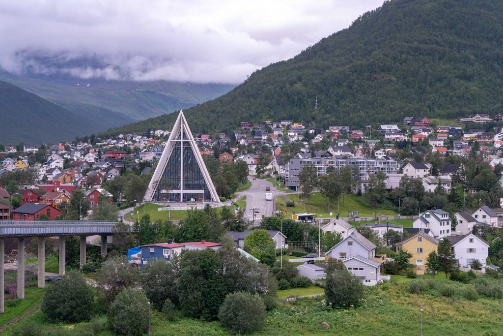 Ab heute geht es wieder südwärts, nun gut nördlicher geht es nicht mehr. Unser Ziel ist die Universitätsstadt Tromsø, das „Paris des Nordens“, wie die Stadt genannt wird. Auf dem Weg machen wir einen Abstecher zum Øksfjordjøkelen, dem neuntgrößten Gletscher des norwegischen Festlandes. Herabstürzende Eismassen aus dem eigentlichen Gletscher reichen bis auf Meereshöhe. Weiter geht die Fahrt und wir kürzen den Weg nach Tromsø mit zwei Fährfahrten ab. Dennoch wird es Abend, bis wir die Stadt erreichen. Da es aber nicht dunkel wird, können wir auch noch an späten Abend auf Entdeckungstour gehen. Natürlich wollen wir das Wahrzeichen der Stadt, die Eismeerkathedrale sehen. Sie gilt als die nördlichste Kathedrale der Welt. Auch die Innenstadt mit vielen traditionellen Holzhäusern ist ansehnlich, aber ein „Paris“ ist die Stadt sicher nicht.
