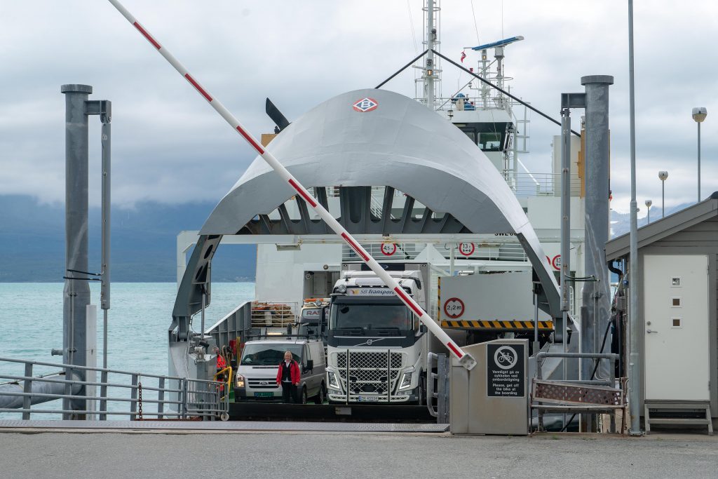 Unsere heutige Tagesetappe soll uns nach Narvik führen. Am Morgen verziehen sich die letzten Regenwolken, aber es bleibt bewölkt. Wir kommen nur langsam voran, denn einige Streckenabschnitte werden modern ausgebaut. Bei 66 Grad und 33 Minuten nördlicher Breite überqueren wir über das Saltfjell den Polarkreis, bzw. wir machen am Polarkreiszentrum halt und sehen uns um. Das Zentrum wurde am 13.07.1990 eröffnet und bietet Informationen über den Polarkreis, einen Andenkenladen und eine Cafeteria. Es ist beliebter Treffpunkt fast aller Nordlandfahrer. Unser nächster Stopp ist eine Lachszuchtanlage, die gut von der Straße aus zu betrachten ist. Kurz vor Narvik erwartet uns die erste Fährüberfahrt über den Tysfjorden. Bezahlung, wie in Norwegen üblich bargeldlos, Roll on und off gehen schnell vonstatten und wir gelangen durch herrliche Landschaft nach Narvik.