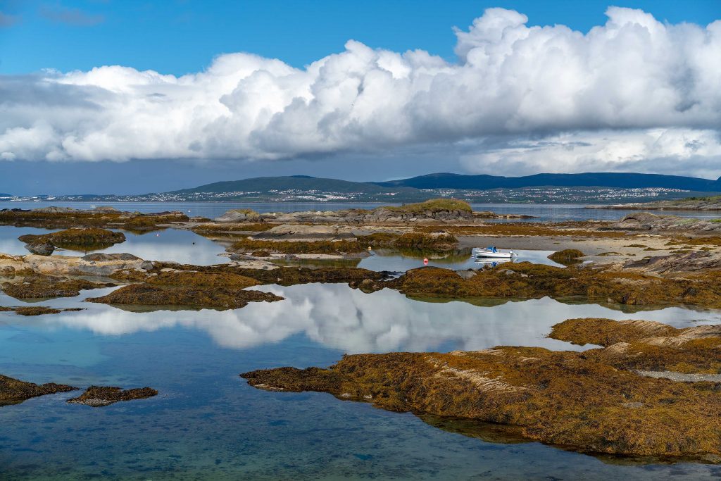 Wer hätte es gedacht, es regnet wieder einmal fast den ganzen Tag. Heute wollen wir die Landschaftsroute über die Küstenregion Jæren nehmen. Dort machen wir am Orrestrand, dem mit 5 Kilometer längsten Sandstrand Norwegens halt. Der Strand ist fast menschenleer. Nur in der Ferne sehen wir zwei Wanderer. Nun ja, wer will schon bei 15 Grad Luft- und Wassertemperatur baden. Aber den Norwegern ist alles zuzutrauen. Ein paar Kilometer weiter schauen wir uns die Kirche von Varhaug an, die sich in wunderschöner Lage am Meer befindet. Hier gibt es schon seit dem 13. Jahrhundert eine Kirche. Die alte Kirche wurde 1905 abgerissen und durch eine kleine Grabkapelle ersetzt. Kurz bevor wir an unser Tagesziel kommen, biegen wir noch nach Süden ab, um zum südlichsten Festlandspunkt Norwegens zu kommen, dem Kap Lindesnes. Hier steht Lindesnes fyr, Norwegens ältester und südlichster Leuchtturm auf dem Festland. Am 27. Februar 1655 wurde hier Norwegens erstes Leuchtfeuer angezündet. Auf dem Weg dorthin müssen wir unbedingt ein Foto von den schönen Häusern des Ortes Furuholmsundet machen. Auch die anderen kleinen Orte fügen sich wunderbar in die Landschaft und die Strecke ist vielleicht ein kleiner Geheimtipp.