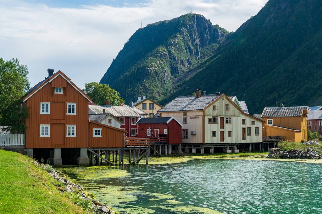 Heute stehen wieder 500 Kilometer Fahrt weiter in den Norden Norwegens an. Das Wetter zeigt sich von seiner besten Seite und die Landschaft strahlt im Sonnenschein. Das blaue Wasser der Seen, das satte Grün der Wiesen und Wälder, sowie die vielen roten Holzhäuser bilden eine bezaubernde Szenerie. Auf 65 Grad und 7 Minuten nördlicher Breite erreichen wir das Tor zu Nordnorwegen. Der Torbogen mit seinem Rastplatz ist für viele Urlauber eine willkommene Gelegenheit eine Pause einzulegen und ein paar Fotos zu machen. Nach einem kurzen Stopp fahren wir weiter, denn mit Mosjøen wartet kurz vor unserem Tagesziel ein wunderschöner Ort auf Erkundung. Hauptattraktion des Ortes, der am Vefsnfjord gelegen ist, bildet die Sjøgata (Seestraße), die von einer der längsten alten Holzhäuserreihen Europas gesäumt wird. Mit seinen 100 Holzhäusern stellt dieses um 1866 entstandene Hausensemble eine der Sehenswürdigkeiten Nordnorwegens dar.